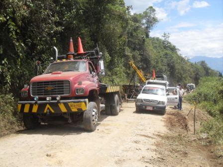 Durante cinco días consecutivos trabajaron dos grúas en la vía circunvalar Galeras, en el corregimiento de Santa Rosa para sacar un carro cisterna que se derrumbó el miércoles de la semana pasada.