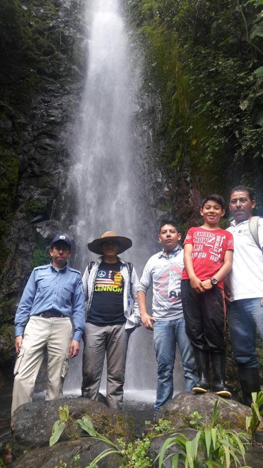 Jiménez y la cascada La Joaquina en la parte alta del río Ingenio, municipio de