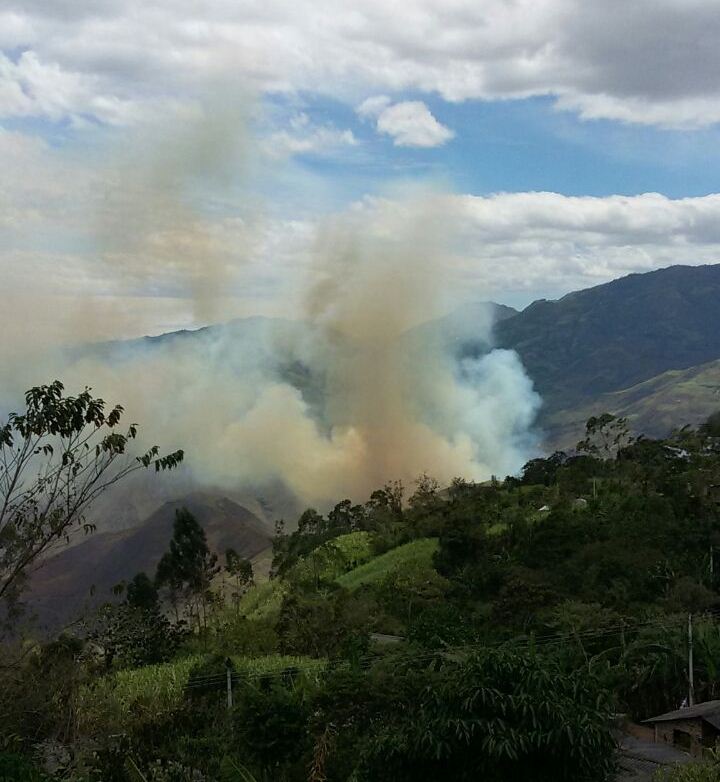 Por su parte el patrullero Darío Meneses expresó que el incendio es en la parte baje del sector de Los Corrales por lo cual solicitó a los propietarios de terrenos bajen hasta este lugar con el fin de ayudar a controlar el fuego.