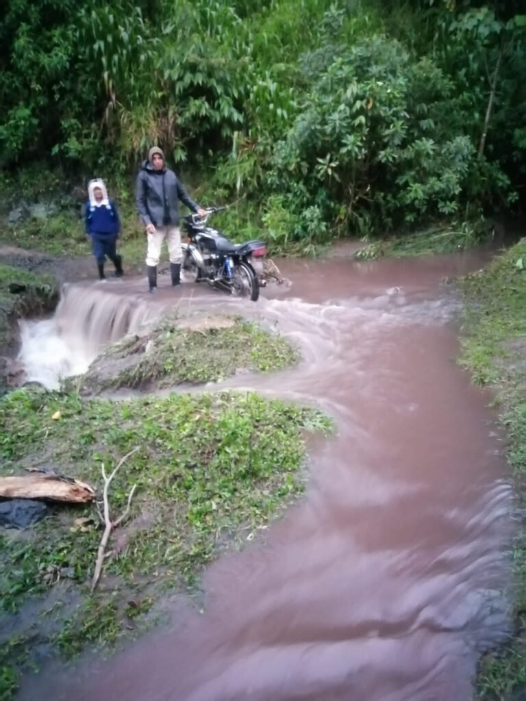 De igual manera se presentaron deslizamientos por la vía que baja a la vereda El Guabo, que no permiten el tránsito de vehículos.