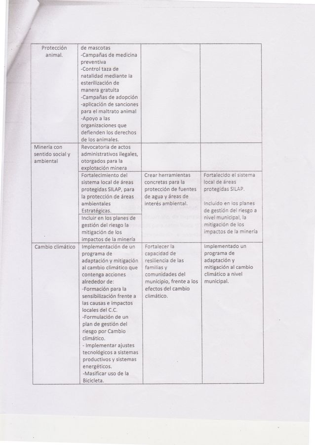 animal, minería con sentido social y ambiental y cambio climático y en cada uno