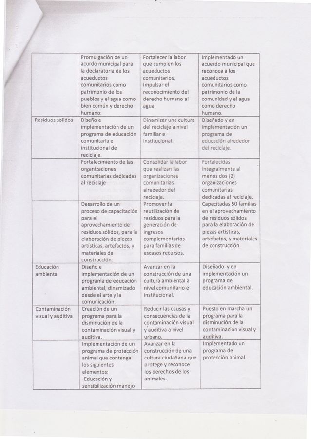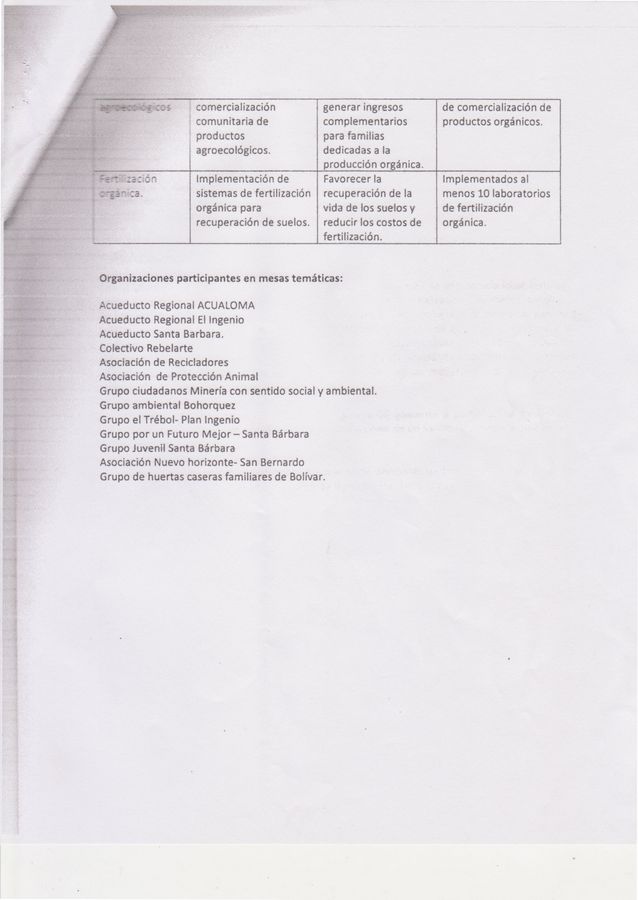 programas de gobierno” que contempla tres componentes: la Mesa ambiental, la Mesa