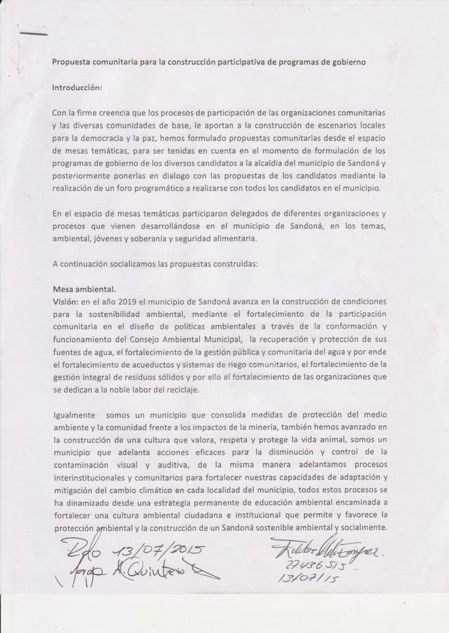 políticas de los candidatos a la alcaldía, cuyo oficio remisorio está firmado