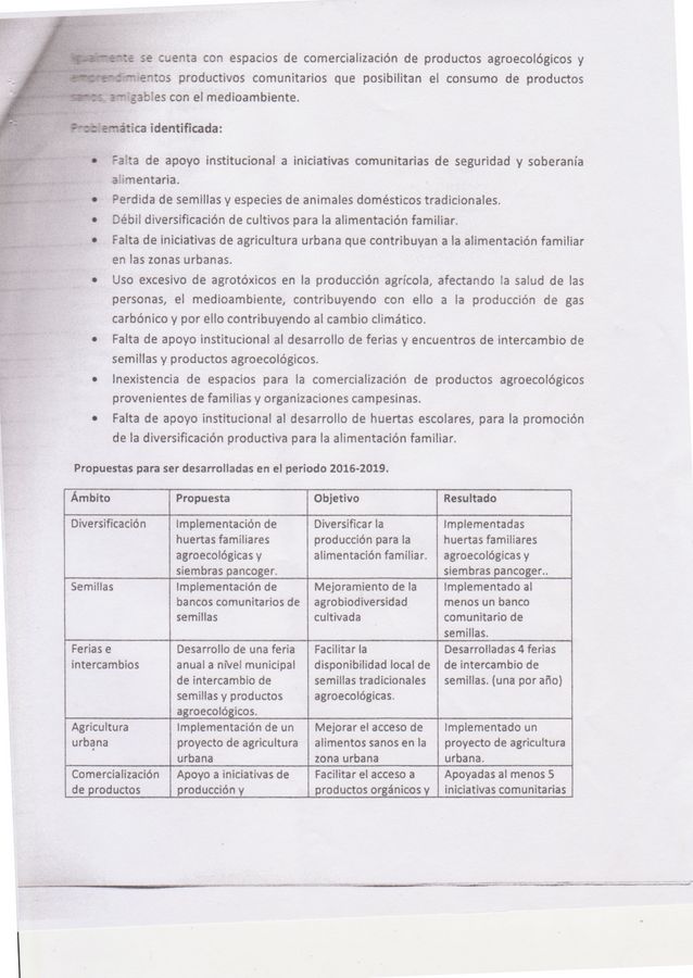 alimentaria quedaron los ámbitos de diversificación, semillas, ferias e