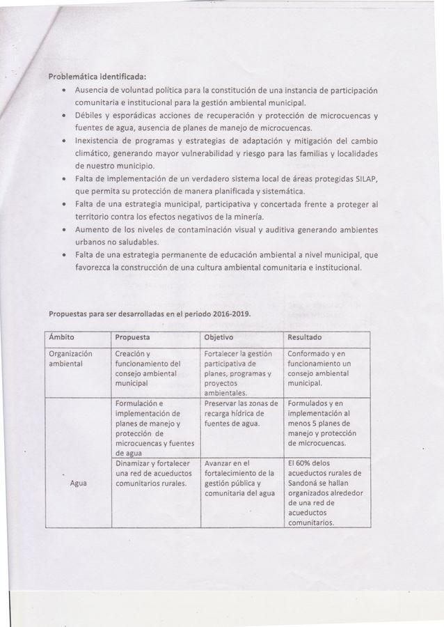 ambiental contemplaron los ámbitos de organización ambiental, agua, residuos