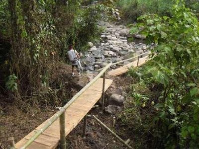 peatonal en madera para permitir la movilidad de las personas que residen en