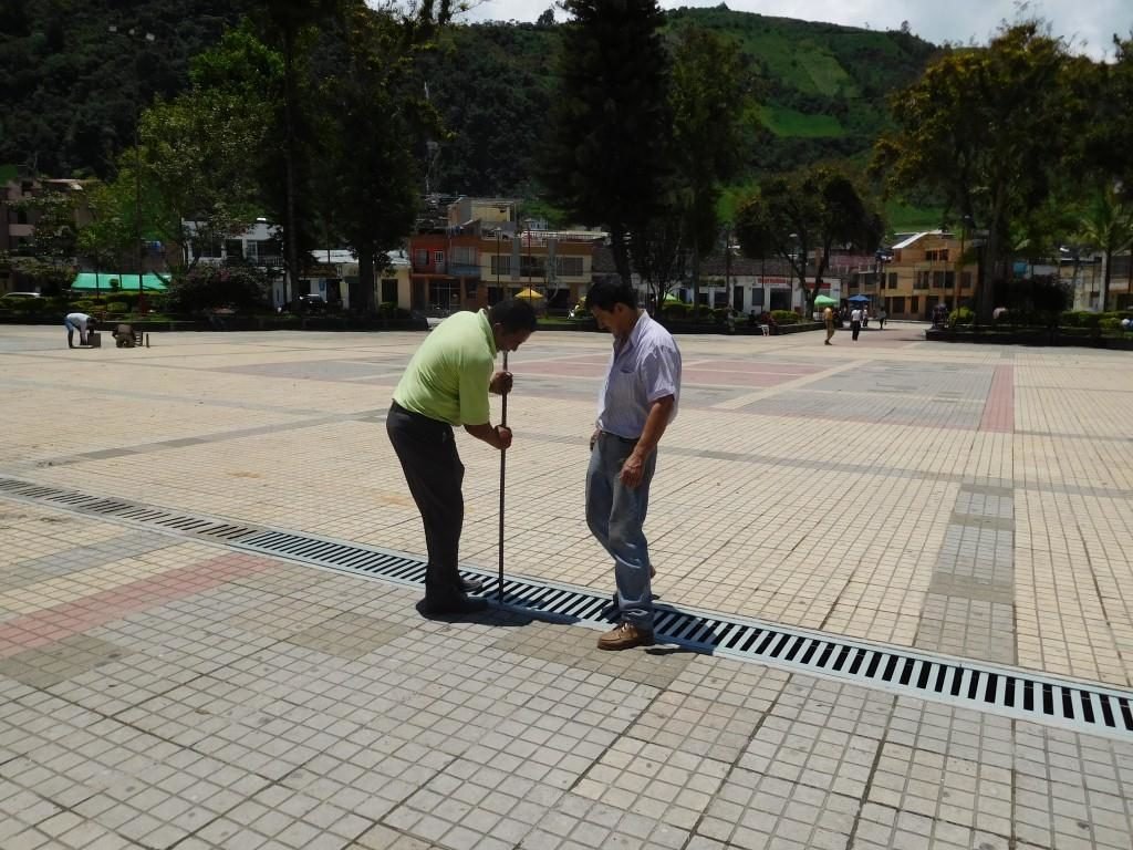 Inicialmente el contratista Clemente Montezuma Coronel instaló las rejillas metálicas en los sumideros de acceso al interior del parque y este martes instaló las rejillas en un sumidero y la mitad de otro, ubicados en el centro del parque.