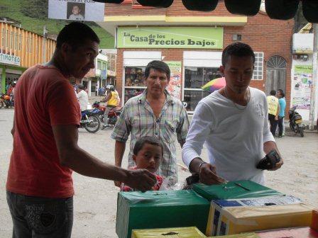 sandoneña que se acercó a las urnas a depositar su contribución voluntaria y