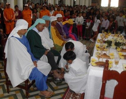 La comunidad sandoneña participó en la celebración de la eucaristía de la Cena del Señor realizada en la basílica Nuestra Señora del Rosario.
