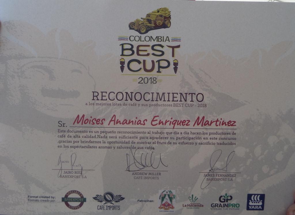 Quiñonez Quinayas, ganador del concurso café de Colombia Best Cup 2018, vendió