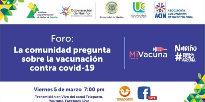 Este viernes a partir de las 7 de la noche el Instituto Departamental de Salud de Nariño – IDNS se realizará el foro “La comunidad pregunta sobre la vacunación del covid-19”.