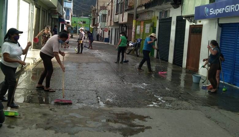 La comunidad de Samaniego residente en el sector urbano lavó y desinfectó las calles este miércoles con el fin de evitar la propagación del covid-19.