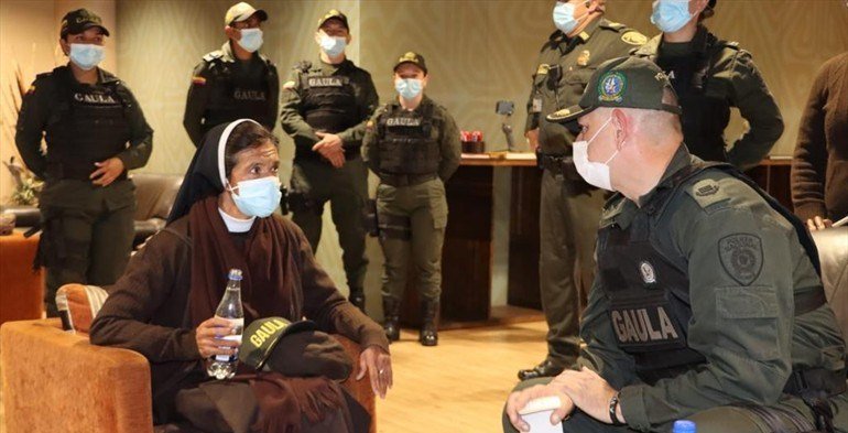 La hermana llego procedente de Roma en un vuelo con escala en la ciudad de Madrid, España, y finalmente en Bogotá, la monja fue recibida por sus compañeras de congregación y por una comisión de la Dirección Antisecuestro y Antiextorsión del Gaula de la Policía, unidad que desde el primer momento estuvo adelantando gestiones en procura de su libertad.
