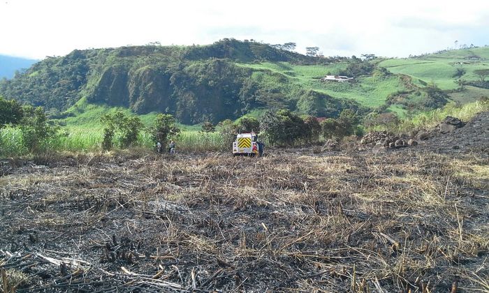 realizar una quema de un material vegetal, no lo pudieron controlar, se extendió por la zoca y luego se