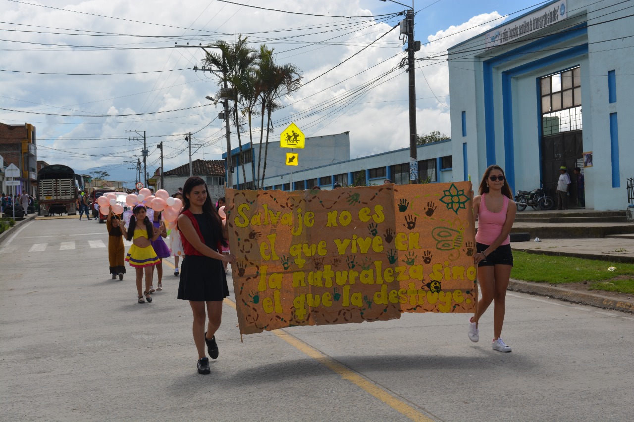 mensajes ambientales a las personas que se ubicaron a lado y lado de la “Senda
