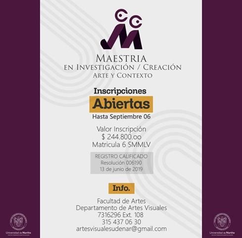 Este viernes 6 de septiembre vence el plazo para realizar la inscripción a la Maestría en investigación/ creación artes y contexto que ofrece la Universidad de Nariño.
