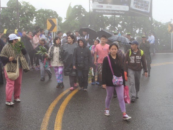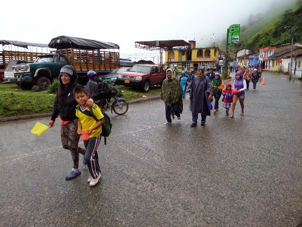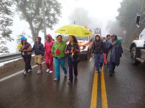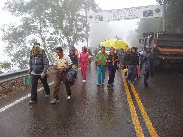 presentó un fuerte aguacero por lo cual los caminantes tuvieron que cubrirse
