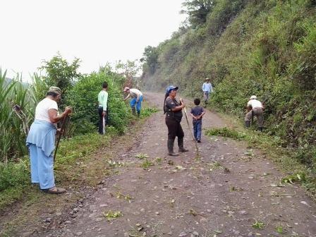 predios aledaños a la carretera realizaron una minga para adecuar la vía de