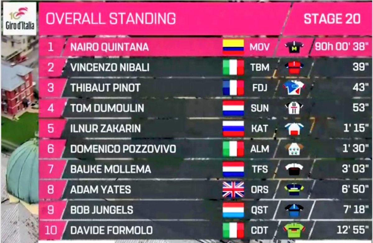 clasificación general Nairo Quintana acumula 90 horas 0 minutos y 38 segundos y