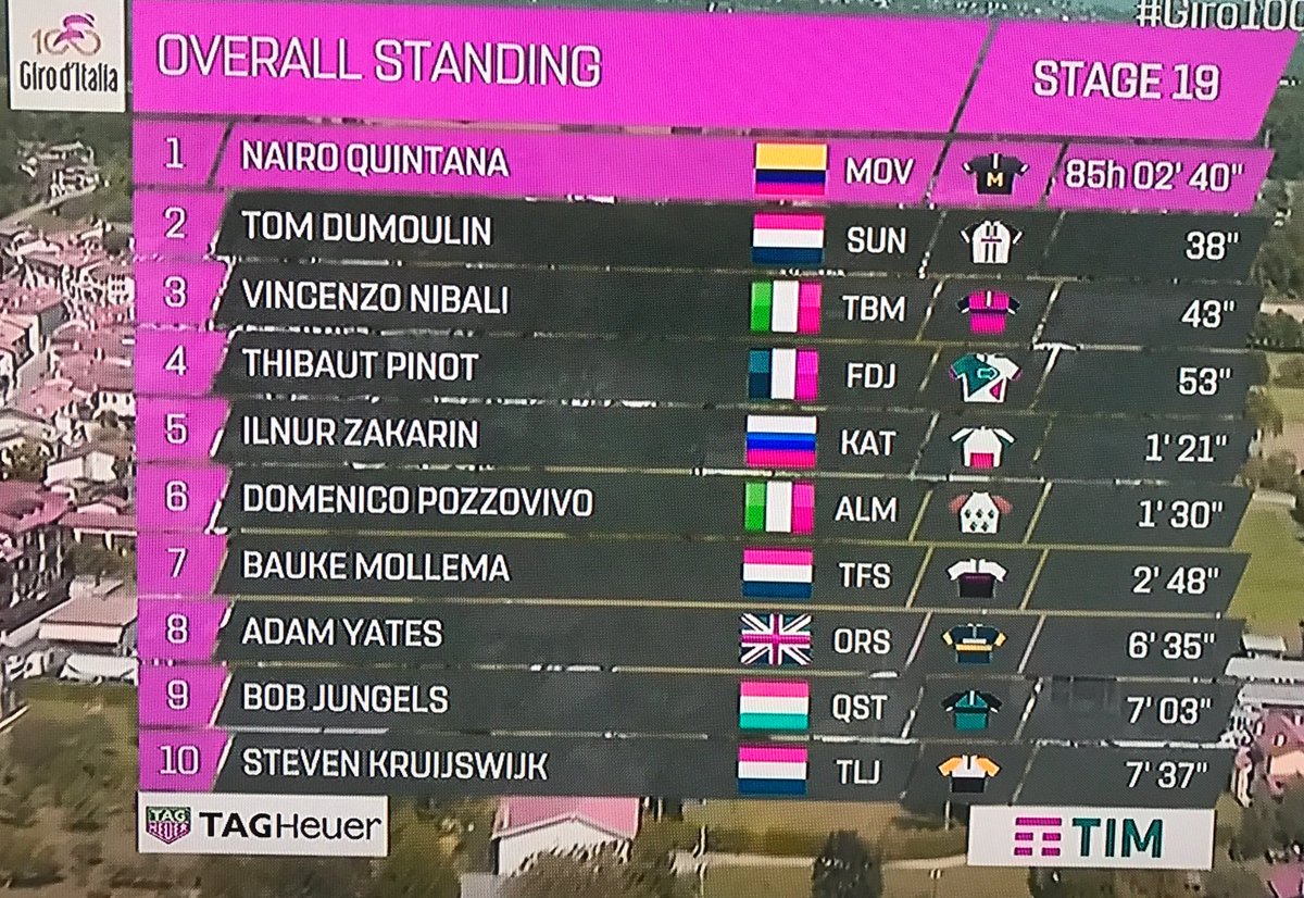 2 minutos y 40 segundos, seguido del anterior líder el holandés Tom Dumoulin quien