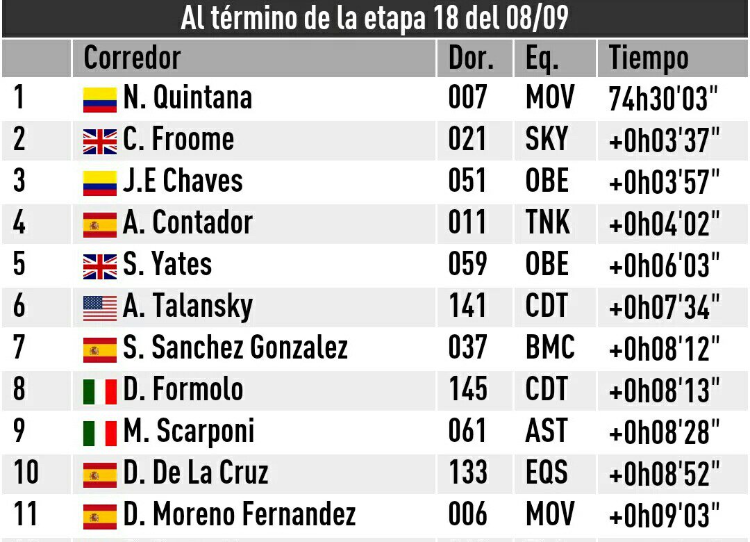 España luego de correrse la décima octava etapa entre Requena y Gandía sobre