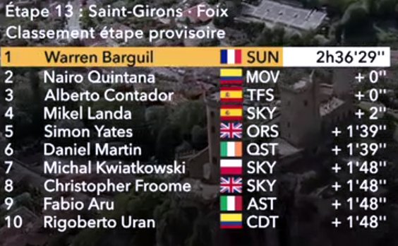 del francés Warren Barguil quien empleó 2 horas 26 minutos y 29 segundos.
