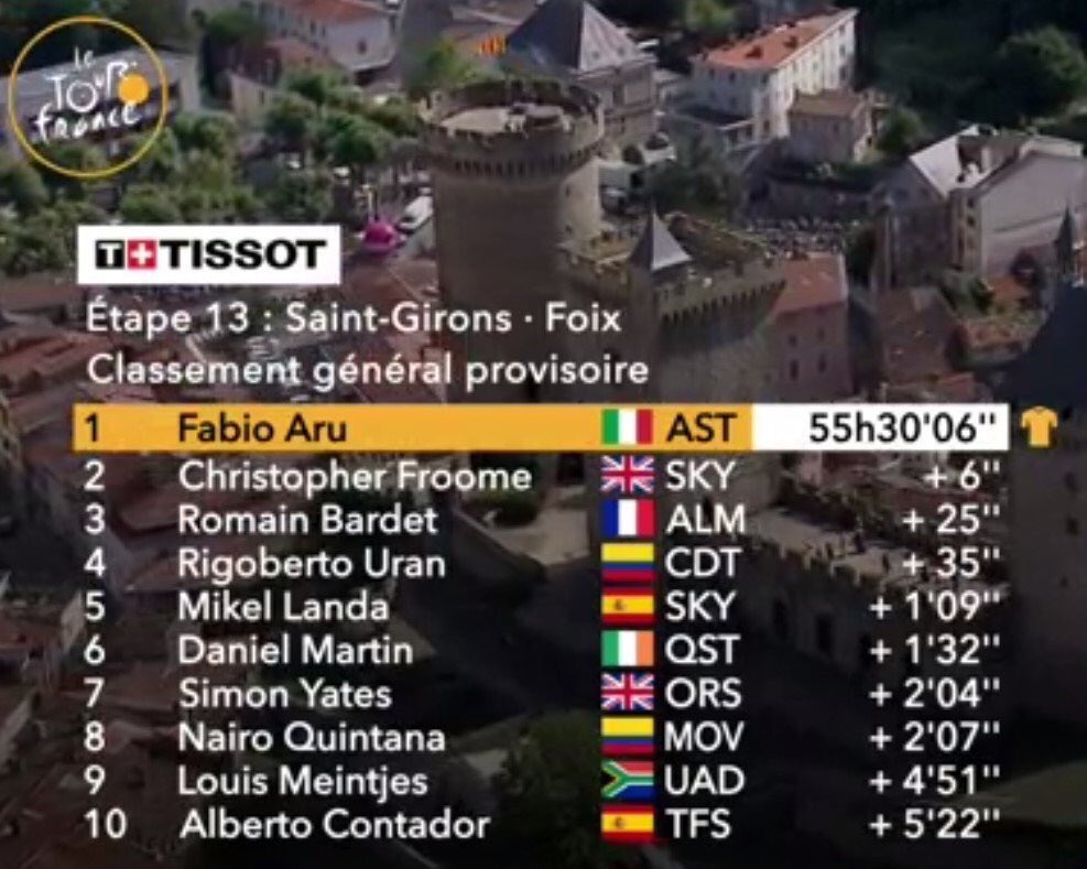 clasificación general sigue comandada por el italiano Fabio Aru con un tiempo