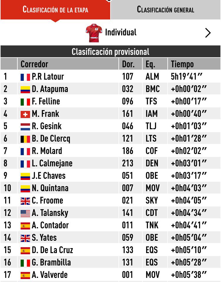 muy favorable para los pedalistas colombianos porque Esteban Chaves recuperó el