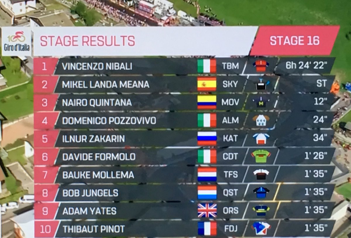 luego de cumplirse la décima sexta etapa entre Rovetta y Bormio, sobre 222