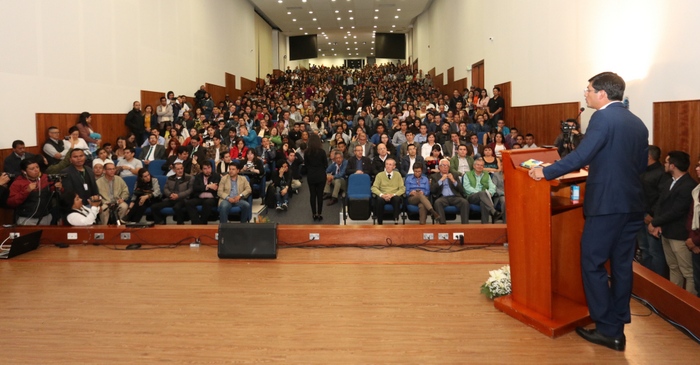 auditorio San Francisco de la Institución Universitaria Cesmag repleto, el Gobernador Camilo Romero Galeano expuso los alcances de esta plataforma para