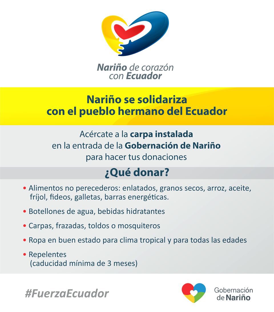 campaña “Nariño se solidariza con el pueblo hermano del Ecuador”, con el fin de
