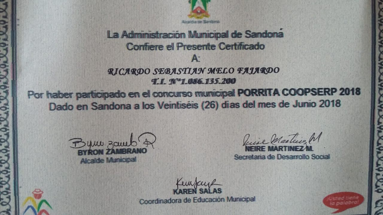 ganó el XIV Concurso municipal Porrita Coopserp – Piloso Coopserp, realizado