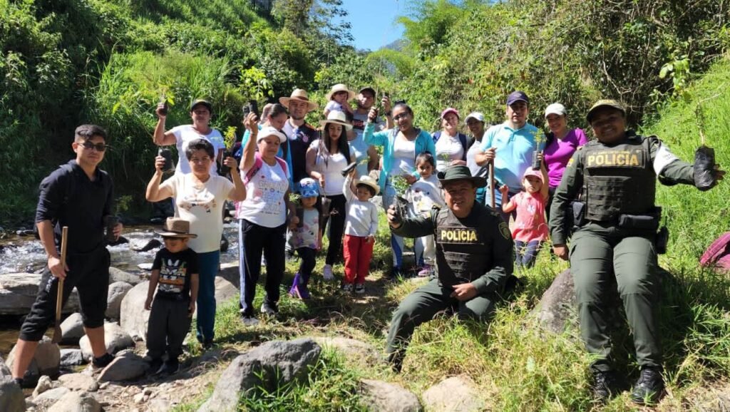 Los grupos de la Policía Nacional de Sandoná, los niños y padres de familia del Jardín Infantil Manitas Creativas, realizaron una campaña de siembra de árboles de especies nativas en la ronda hídrica del río Ingenio.