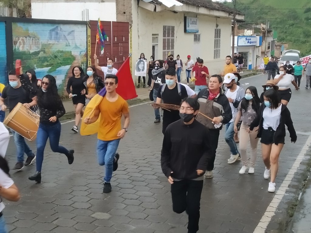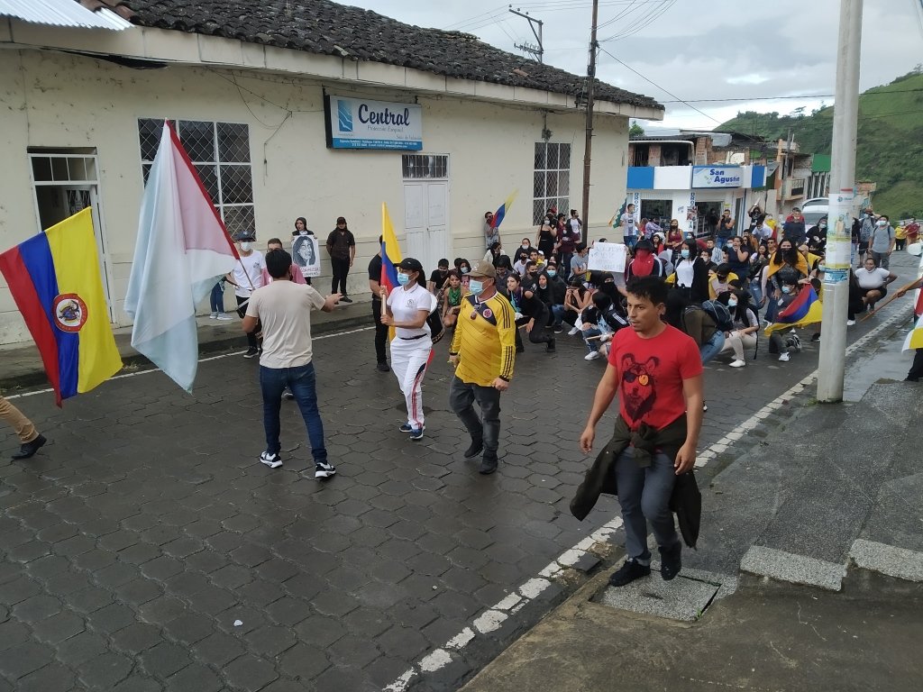 Docentes, jóvenes, comerciantes y vendedores de la plaza de mercado participaron en una nueva manifestación por las calles de Sandoná en respaldo al comité nacional del paro.