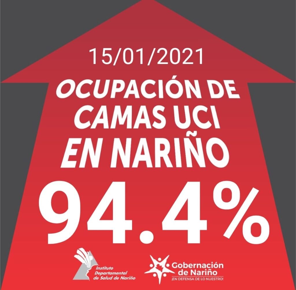 El Instituto Departamental de Salud de Nariño reportó este viernes que de las 197 camas UCI asignadas, 47 están ocupadas por pacientes probables o sospechosos de covid y 139 por pacientes confirmados de covid, para un 94.4 por ciento de ocupación.