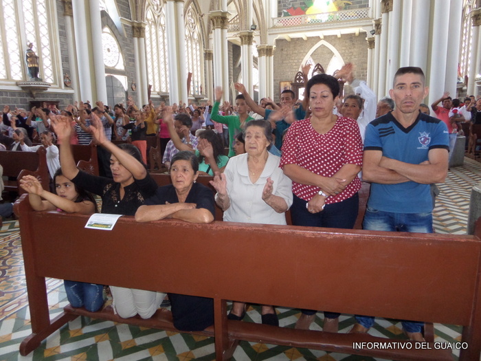 Varias familias sandoneñas participaron en lasegunda eucaristía de rogativa en la basílica Nuestra Señora del Rosario para pedir a Dios Todopoderoso que regresen las lluvias celebrada por el párroco Emiro Libardo Enríquez.