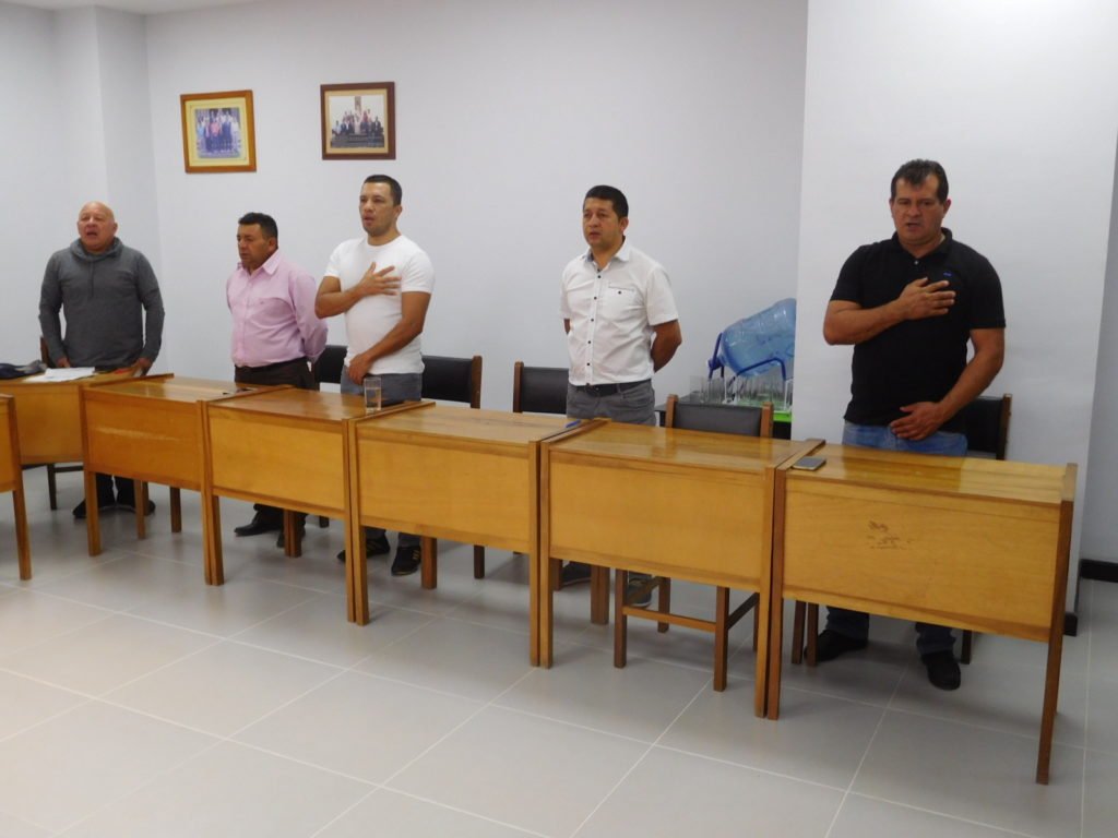 Después del llamado a lista por parte de la secretaria de la Corporación Sonia Narváez, inició el acto de posesión del personero, con la entonación de los himnos de Colombia y Sandoná y en seguida la toma de juramento a cargo del presidente del Concejo Geovanny Fajardo Fajardo al abogado Zambrano Ágreda.