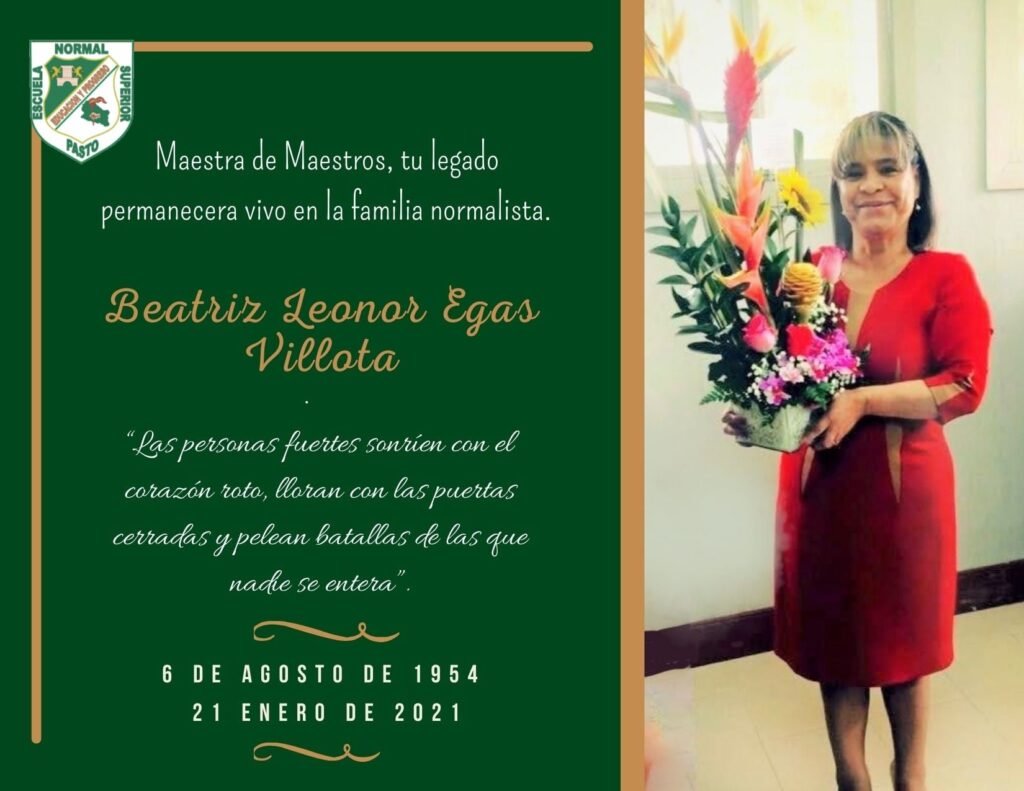 Un profundo pesar causó en la comunidad educativa de la ciudad de Pasto el fallecimiento de la profesora Leonor Egas Villota, coordinadora académica de la Institución Educativa Normal de Pasto.