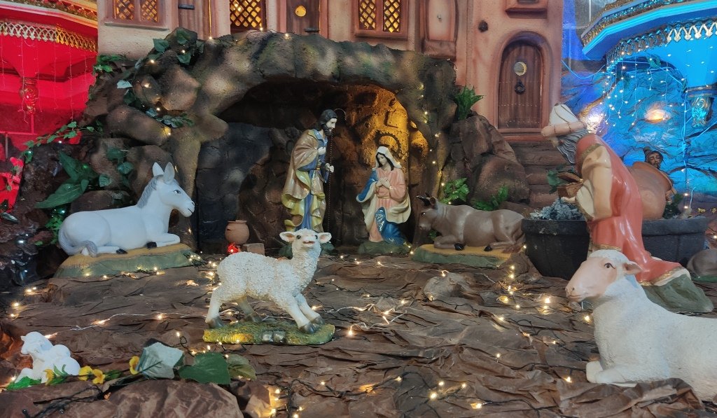 Al costado izquierdo del altar mayor de la basílica Nuestra Señora del Rosario está el pesebre que fue elaborado en los últimos días.