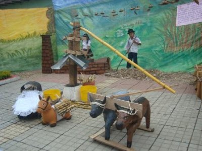 paneleros y representaron el viejo trapiche con masas verticales, el horno y el