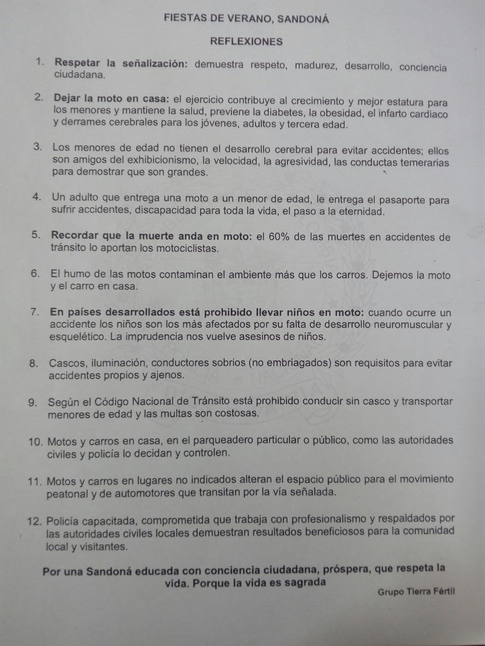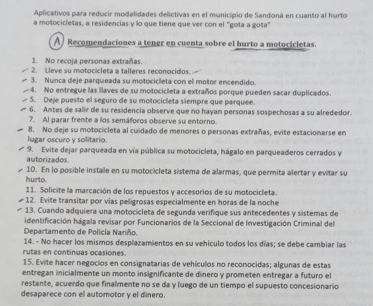 algunas recomendaciones con la comunidad sandoneña para evitar el hurto de motocicletas