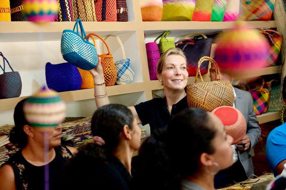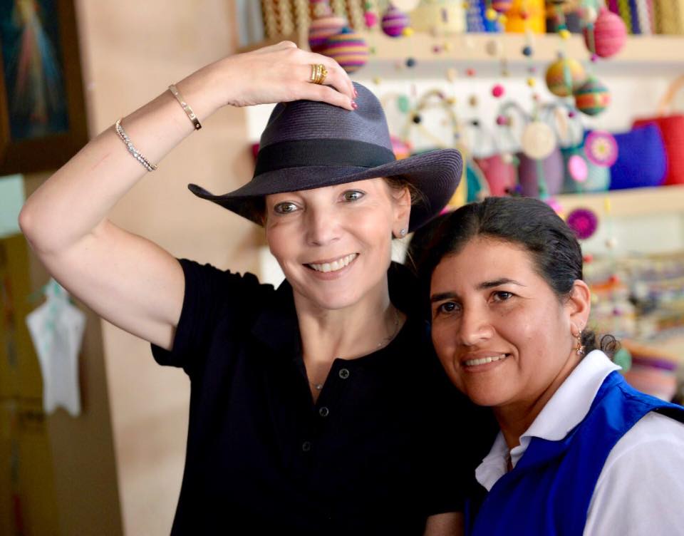 acompañada de la gerente general de Artesanías de Colombia Ana María Fries, quien