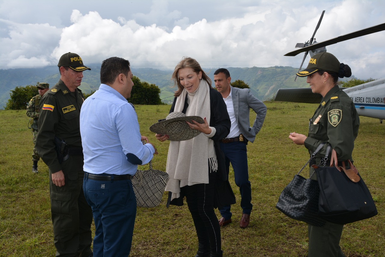 aterrizó en helicóptero en la cancha de la vereda El Tambillo, corregimiento de
