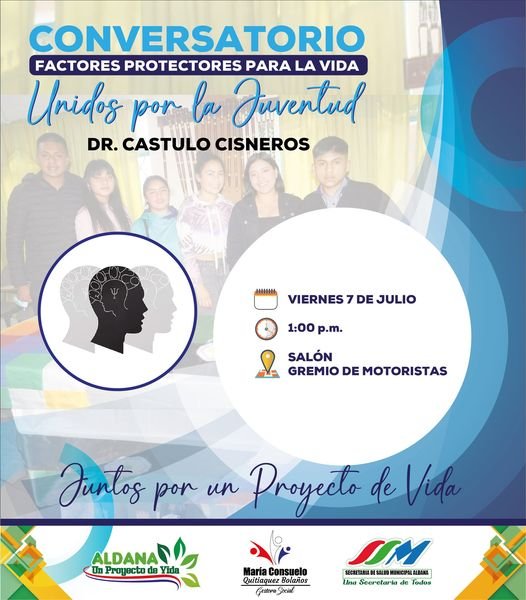 La Administración Municipal de Aldana invitó a la comunidad a participar en el conversatorio sobre los factores protectores de la vida, dirigido por el psiquiatra Cástulo Cisneros Rivera.