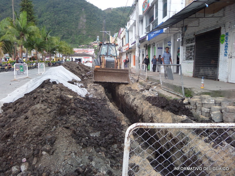 En la calle 6 entre carreras 4 y 5, costado sur del parque principal, únicamente se hace la reposición de la tubería de acueducto porque a mediados del año 2015 se cambió la tubería de alcantarillado dentro del proyecto de reposición de tuberías de alcantarillado que se ejecutó en esta localidad con recursos del Ministerio de vivienda, ciudad y territorio.
