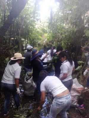 tomando conciencia de ayudar a mantener limpia la quebrada.