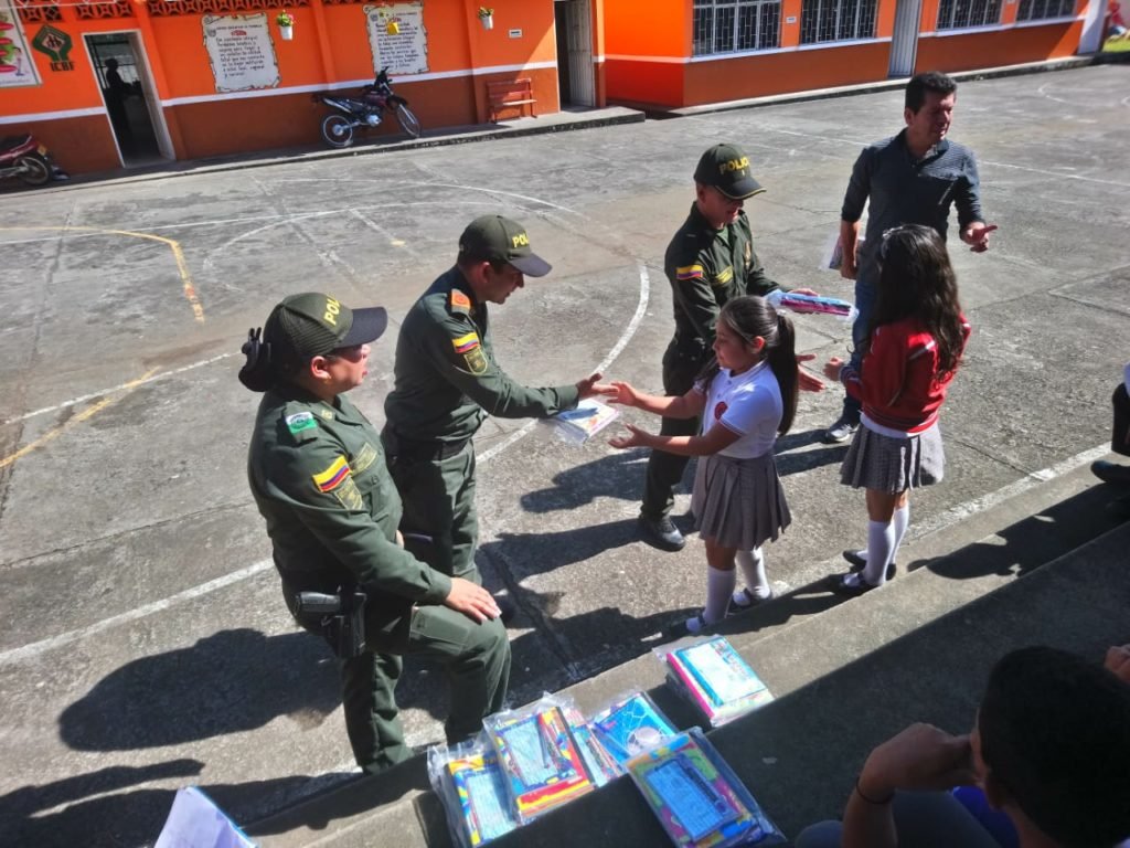 El patrullero Darío Meneses Díaz indicó que la campaña comenzó con la recolecta de los útiles escolares en el parque principal en la cual participaron comerciantes, familias y personas de la comunidad sandoneña.