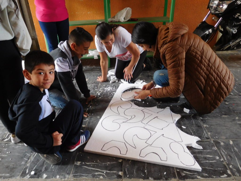 En la Casa de la Cultura los gestores culturales Miller Matituy y Marcela Saavedra dictan talleres a niños y niñas y realizan acompañamiento en la elaboración de motivos para el desfile del Carnavalito, previsto para el 3 de enero.