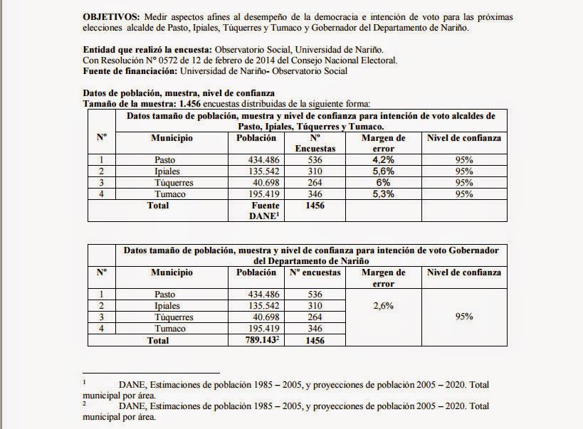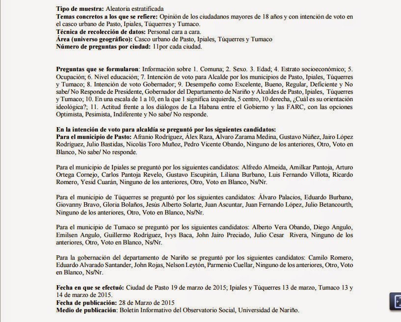 encuestas en Pasto, Ipiales, Tuquerres y Tumaco durante los días 13, 14 y 19 de