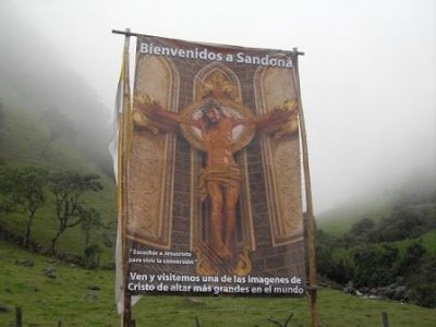 con las imágenes del Señor Crucificado en el puente del río Chacaguaico,